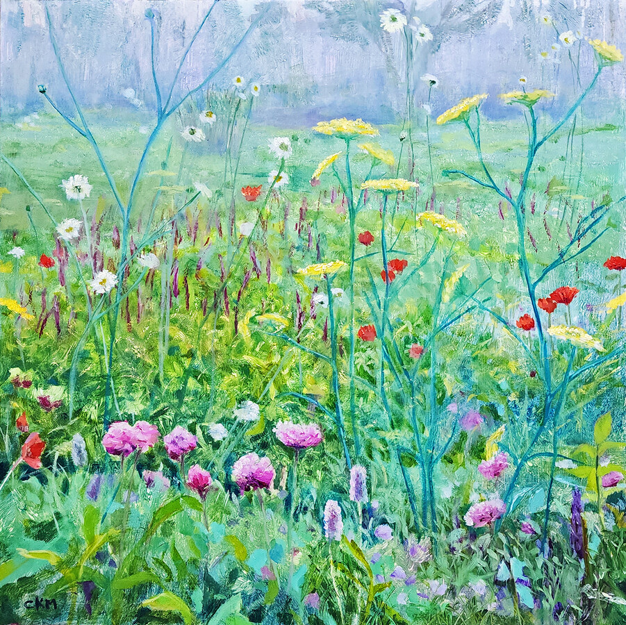 I enjoy doing these "thousand flowers" tapestry-like paintings. They allow lots of room for considered composition, color play and delight.