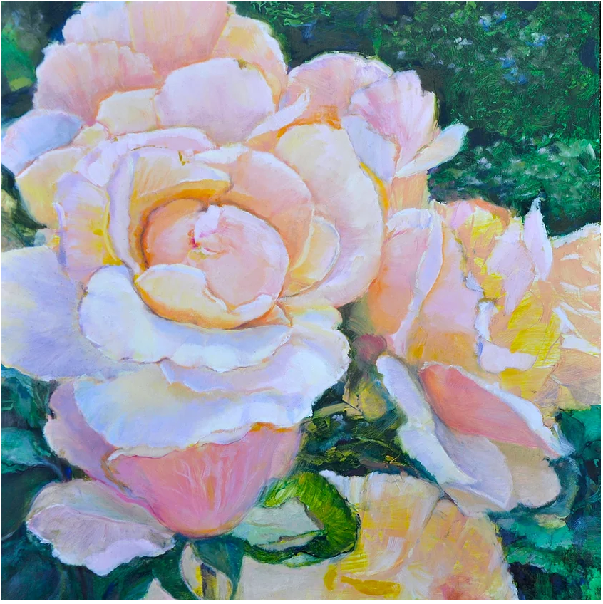 I enjoyed working on this slightly softer painting, letting the flowers be gentle and tender.